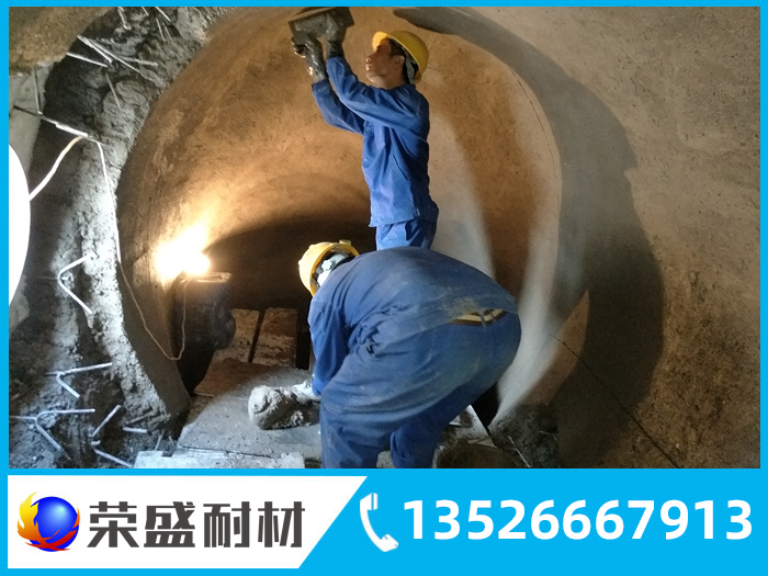 澆注料振動(dòng)施工時(shí),應(yīng)將混好的泥料邊加入胎模內(nèi)邊振動(dòng)。振動(dòng)時(shí)間的控制應(yīng)以澆注體表面翮漿并無(wú)明顯氣泡冒出為宜。脫模時(shí)間應(yīng)視施工現(xiàn)場(chǎng)的環(huán)境溫度而定,要保證在澆注料榮盛耐材凝并具有一定強(qiáng)度后脫模。