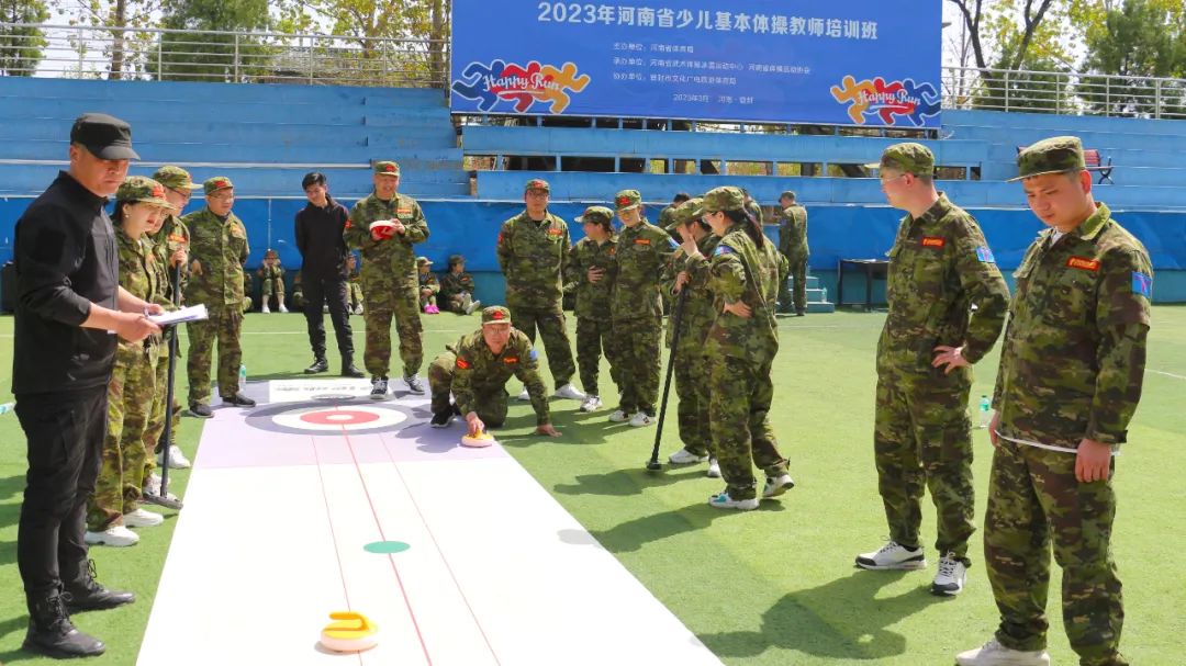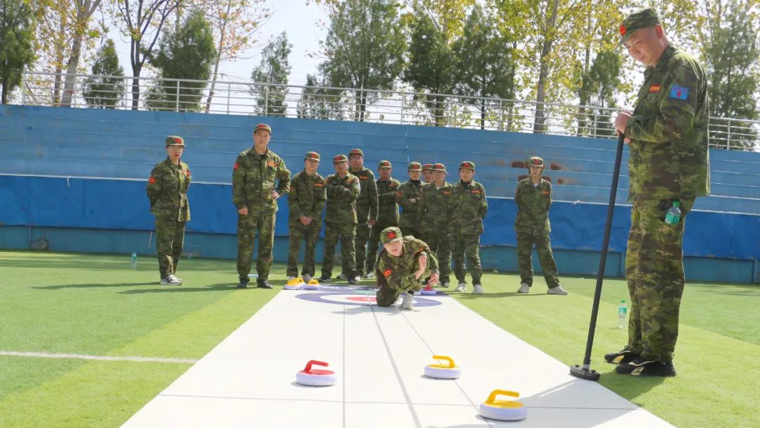 在【旱地冰壺】項(xiàng)目中,八個(gè)小組的隊(duì)員們一邊商榷對(duì)敵戰(zhàn)術(shù),一邊進(jìn)行任務(wù)分配。隨著一聲哨響,兩個(gè)賽隊(duì)同時(shí)開(kāi)賽。隊(duì)員們?nèi)褙炞?、凝神靜氣,向前邁步?jīng)_刺,揮動(dòng)手臂擲壺,冰壺按照隊(duì)員們?cè)O(shè)想的路線(xiàn)擊打到對(duì)方的冰壺,使其滑出得分圈并穩(wěn)穩(wěn)地停留在中心點(diǎn),成功得分,大家歡呼雀躍,圍觀隊(duì)員們也紛紛叫好,掌聲、歡呼聲此起彼伏,好不熱鬧。